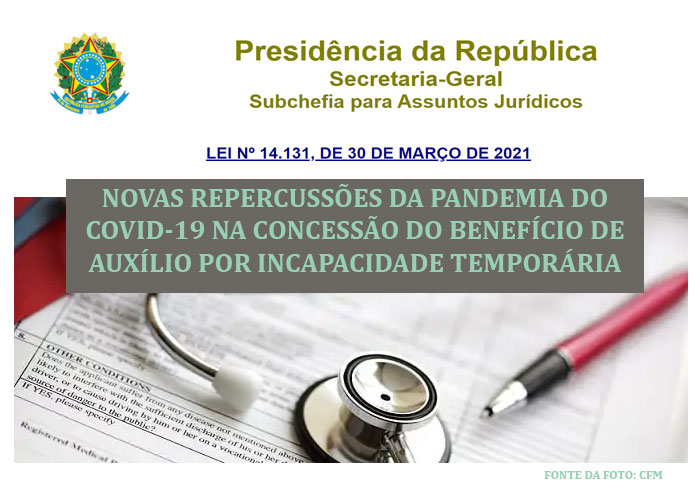 Assim, a fim de evitar a demora na conclusão dos processos administrativos de pedido de benefício de auxílio por incapacidade temporária (antigo auxílio-doença), bem como um represamento dos processo sem conclusão, foi publicada em 30 de março de 2021 a Lei n. 14.131 que, entre outros assuntos, disciplinou a análise e concessão desta espécie de benefício por incapacidade apenas por meio de análise documental.