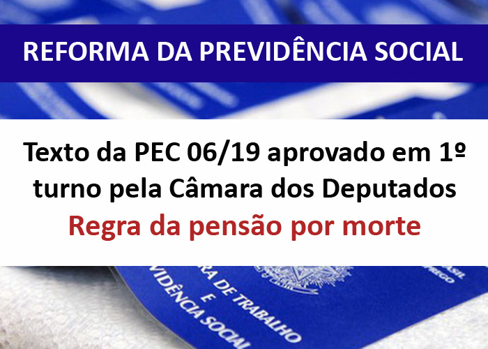 A PEC nº 06/2019, que tramita no Congresso Nacional, tem como finalidade a reforma dos regimes de previdência social dos trabalhadores da iniciativa privada e dos servidores públicos, trazendo alterações para a proteção do benefício de pensão por morte.