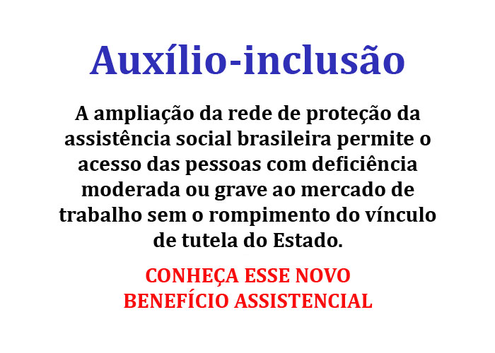 A Lei 14.176 de 22 de junho de 2021 foi editada com alguns propósitos entre eles dispor sobre o auxílio-inclusão. Vale lembrar que a norma ainda estabeleceu o critério de renda familiar per capita para acesso ao benefício de prestação continuada e estipulou parâmetros adicionais de caracterização da situação de miserabilidade e de vulnerabilidade social, bem como autorizou, em caráter excepcional, a realização de avaliação social mediada por meio de videoconferência.